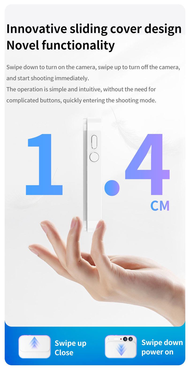 1. Sliding Cover Design: Sleek sliding cover for quick camera activation and protection.