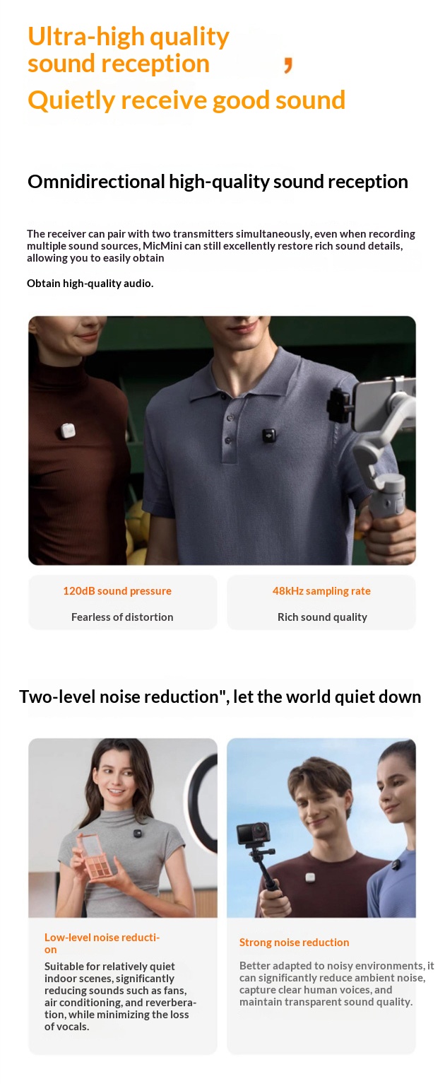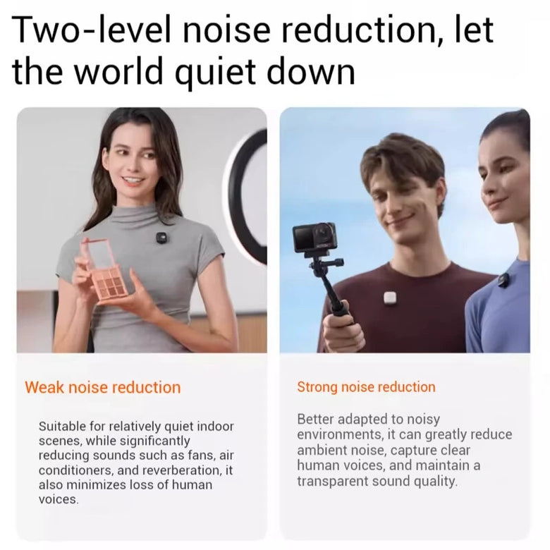 3. Dual-Level Noise Reduction: Adjustable settings for silent environments or noisy outdoor scenarios for clearer sound capture.