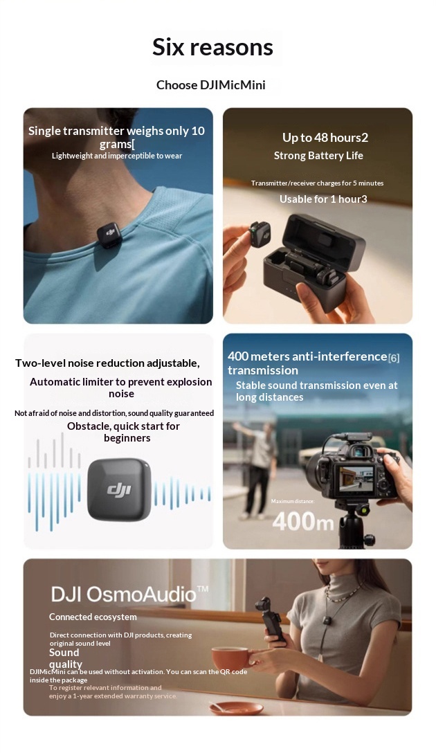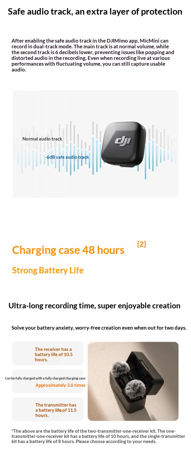 6. OsmoAudio™ Integration: Seamlessly connects to DJI Osmo devices without the need for an additional receiver.