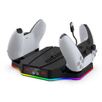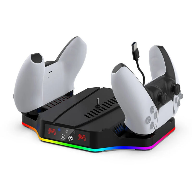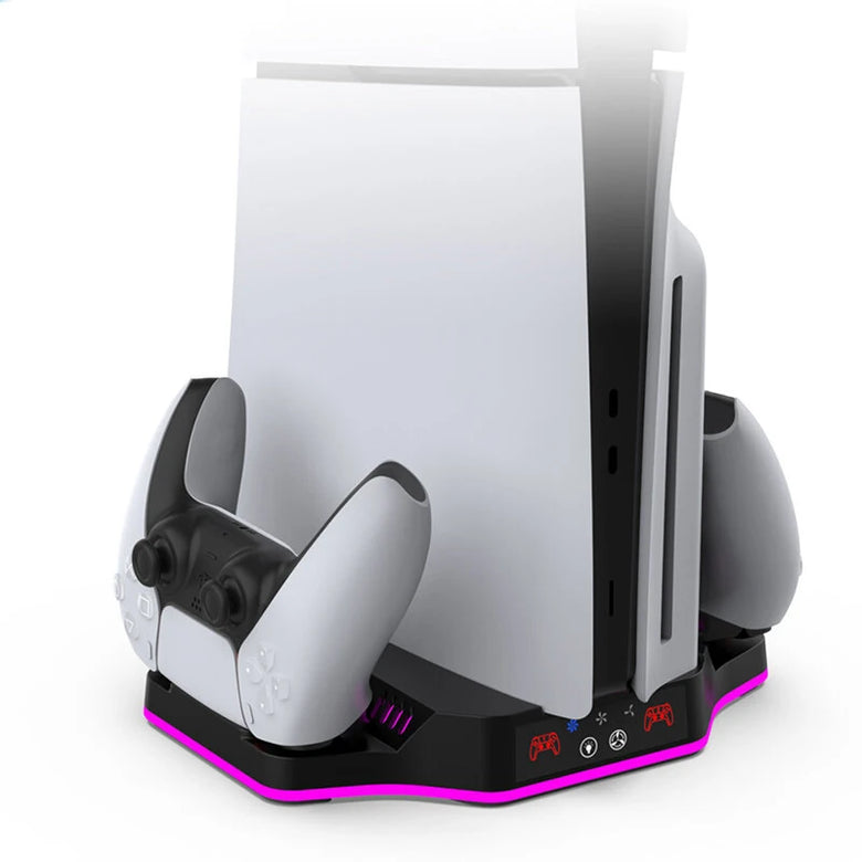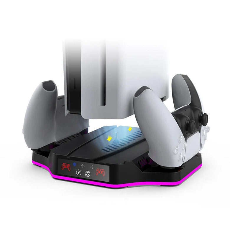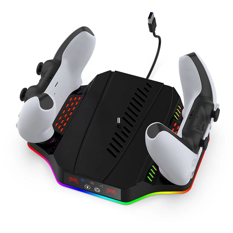 • DOBE PS5 Slim Game Console Cooling Base with RGB Colorful Ambient Light Game Controller Charging Station TP5-3583