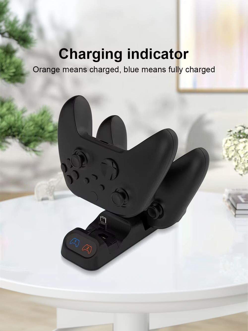 1.Universal Compatibility Charging Stand: This charging stand Compatible for Switch PRO, Google Stadia, Xbox Elite 2, Xbox Series X/S and PS5 controllers and select third-party controllers with Type-C ports such as Betop BIP-VIT and GameSir T4.