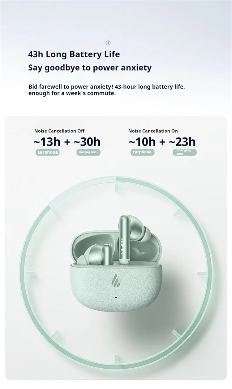 Noise Cancelling off: 13h(Only Earbuds) / 30h(Charging Case) Noise Cancelling on: 10h(Only Earbuds) / 23h(Charging Case) |