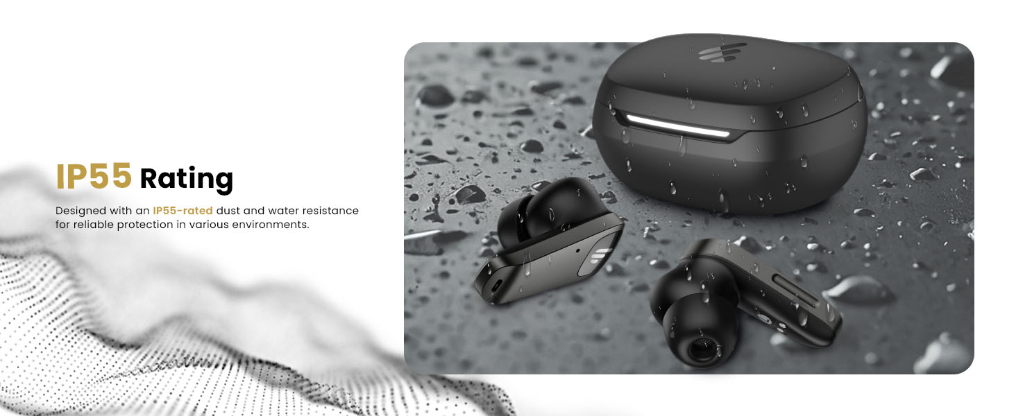 IP55 rating ensures resistance against dust and water splashes, suitable for active lifestyles.