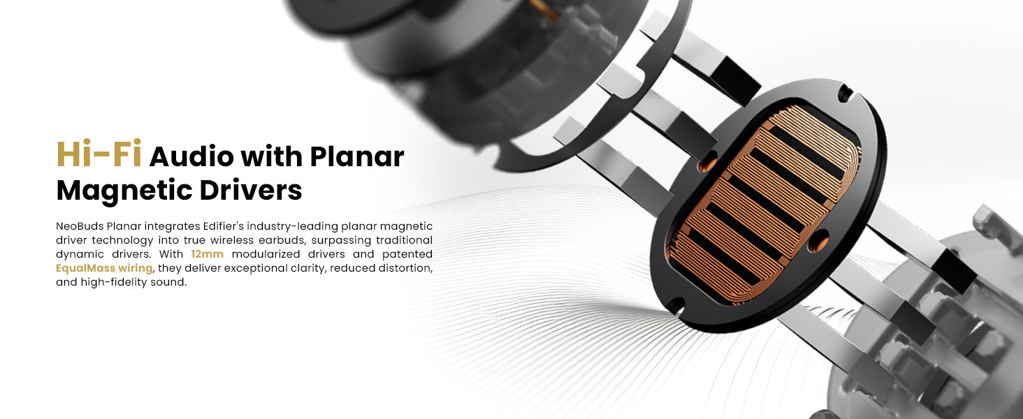 EDIFIER NeoBudsPlanar TWS Earbuds ANC bluetooth Earphones 3rd-gen QualcommAdaptive ANC ECNS Tech Hi-Res Audio LDAC Snapdragon Sound 12mm Planar Magnetic Drivers 30H Playback 0.08s Low Game Delay Sports Headphones