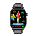 • ET580 2.04 inch AMOLED HD Screen Blood Composition Measurement ECG Electrocardiogram bluetooth Call Heart Rate Blood Pressure SpO2 Monitor ECG Syphilis Function Non-invasive Blood Glucose Multi-sport Modes Music Playback IP68 Waterproof Smart Watch