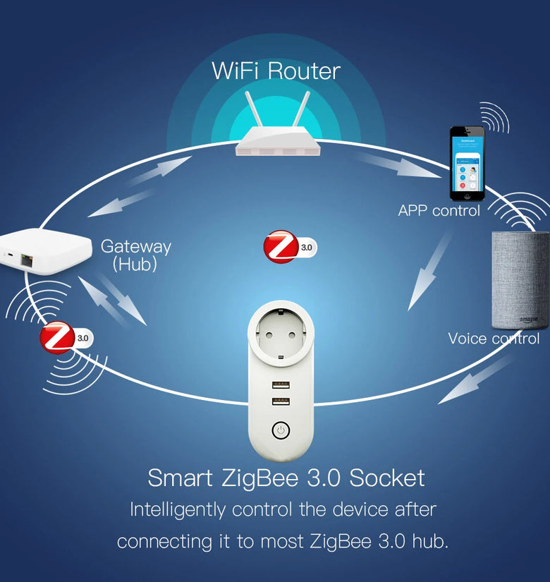 EU Smart Socket Zigbee3.0 2 USB Port 100-240V Voice Control Work With SmartThings Wink Alexa Google Home