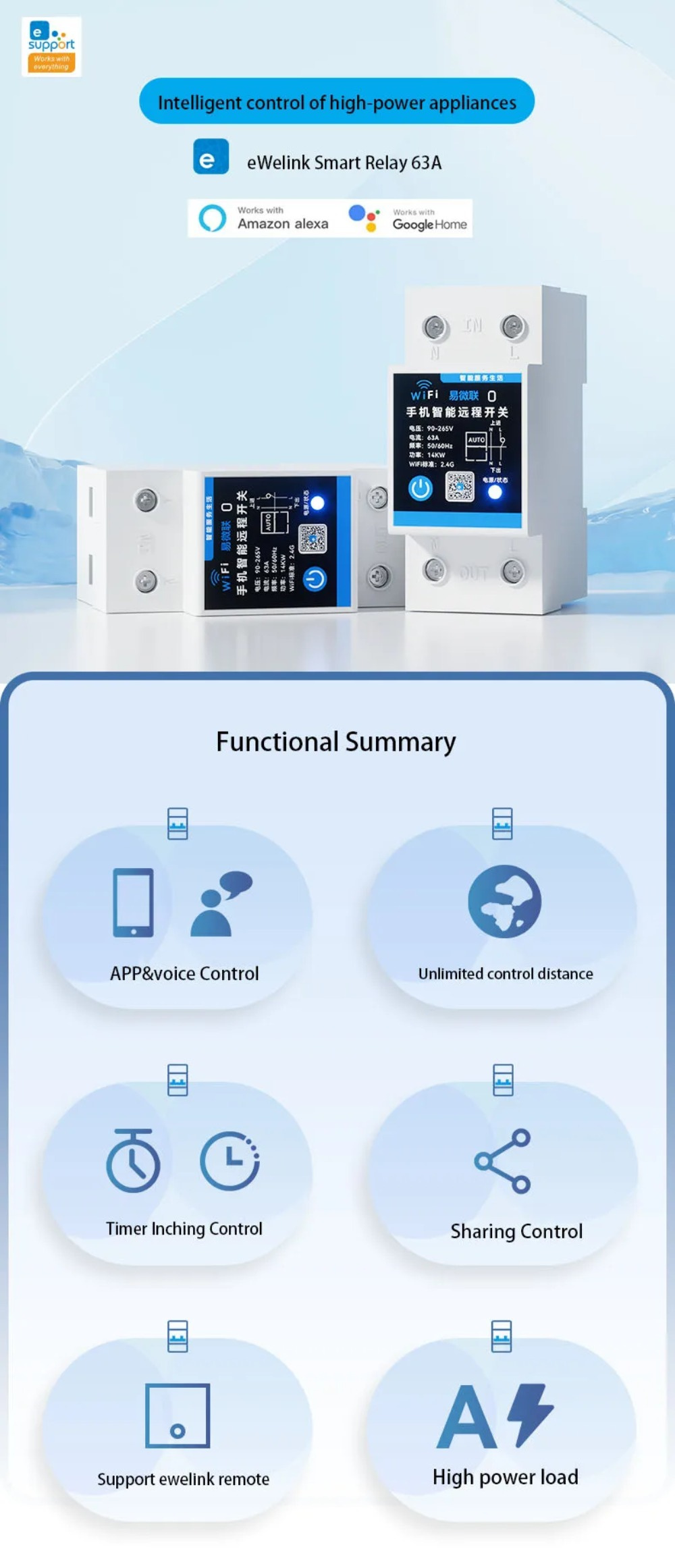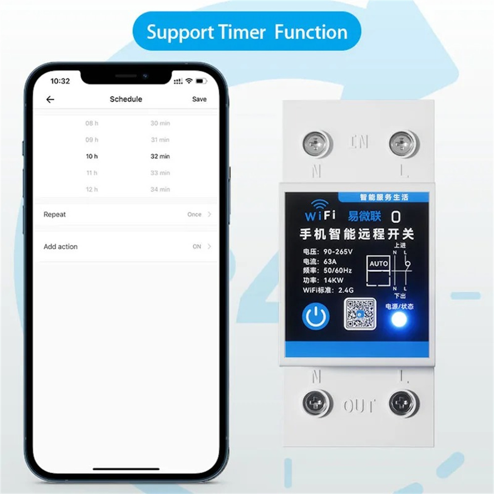 • eWelink 63A Din Rail Smart Switch Relay APP Remote Control Timer Inching Function 2P Circuit Breaker Switch Works with Alexa Google