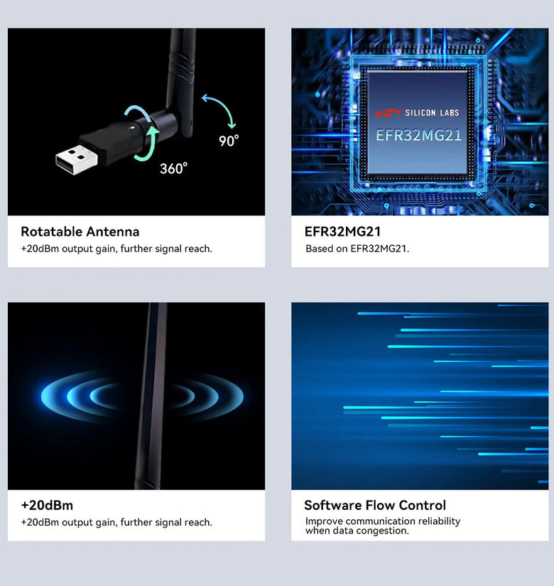Output Power: 20dBm (Max), 5dBi High Gain Detachable Antenna