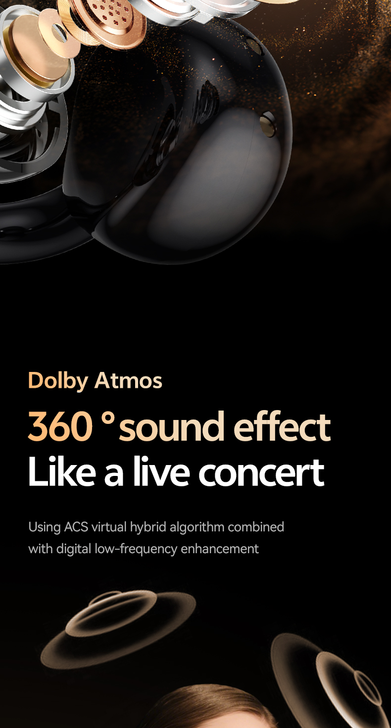 Enjoy cinema-grade surround sound with high fidelity audio reproduction that enhances clarity. The spatial sound technology creates a dynamic, live concert-like experience wherever you are.