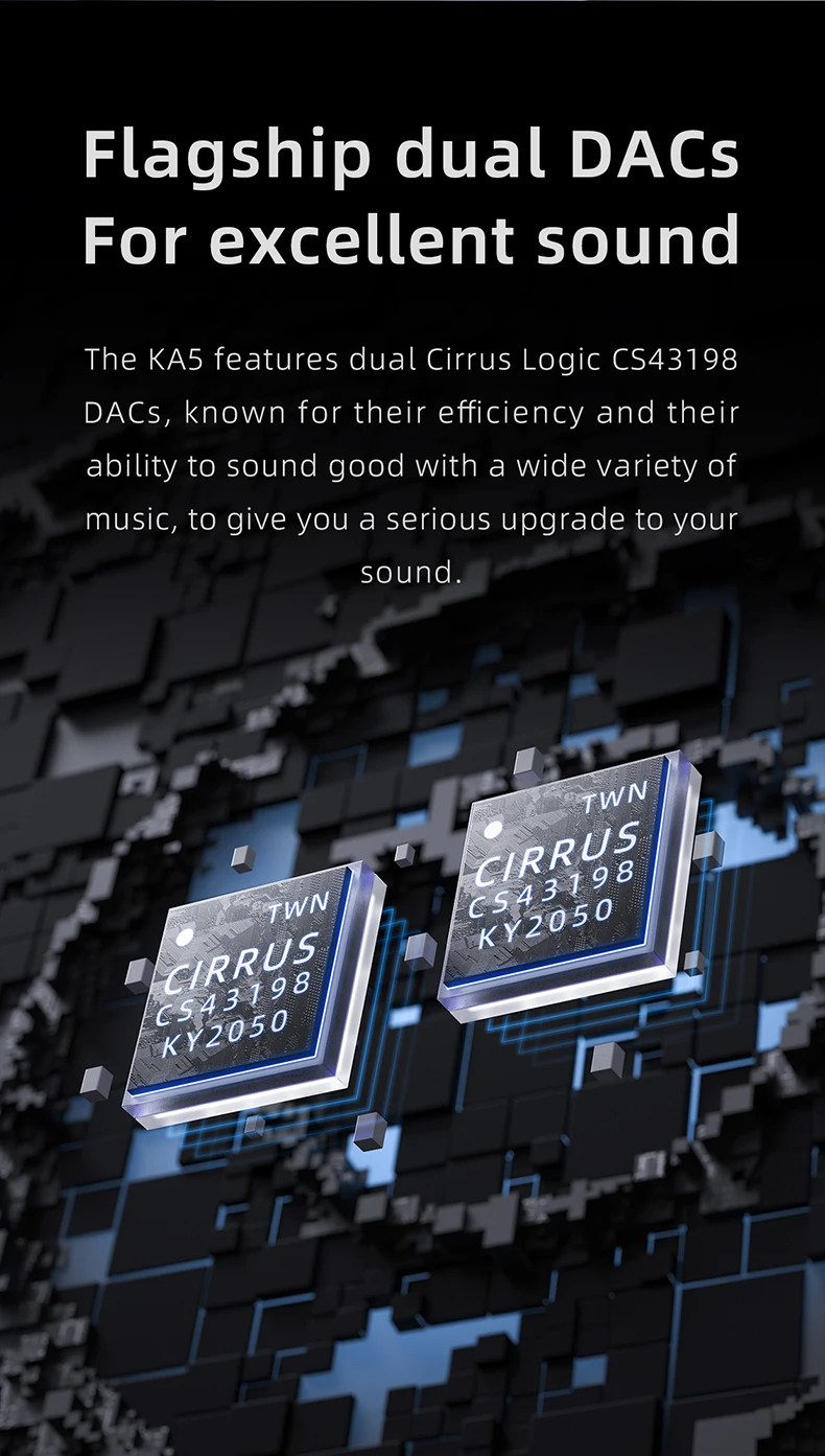 2. Dual DACs: Ensures improved audio performance and high-resolution sound quality.