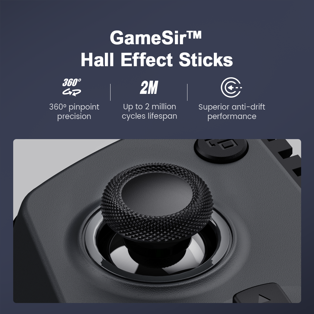 3.Precise and Anti-Drift: GameSir™ Hall Effect Sticks
