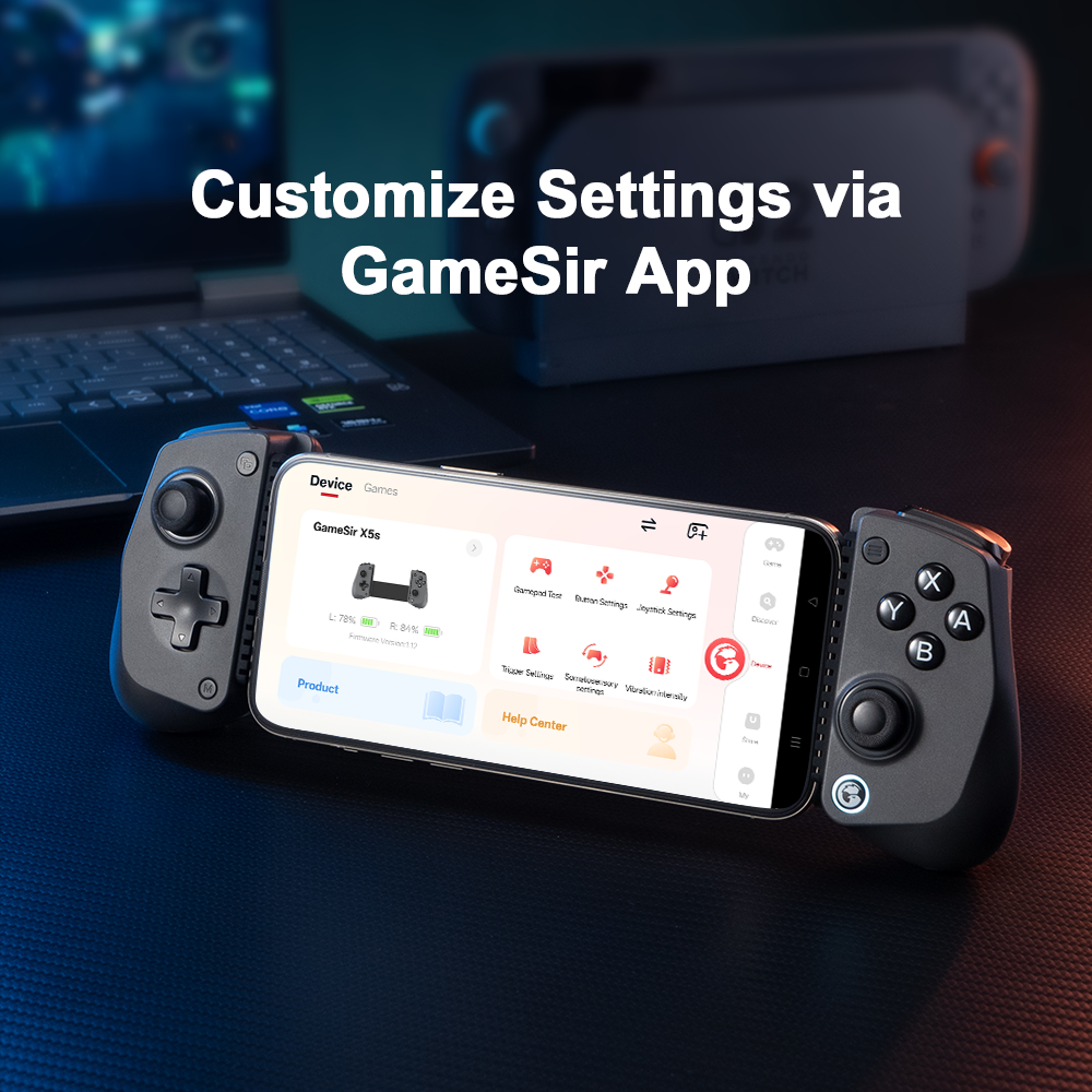 By downloading the GameSir app, gamers can perform firmware upgrades, adjust stick and trigger dead zone, customize vibration intensity, test buttons, and more.