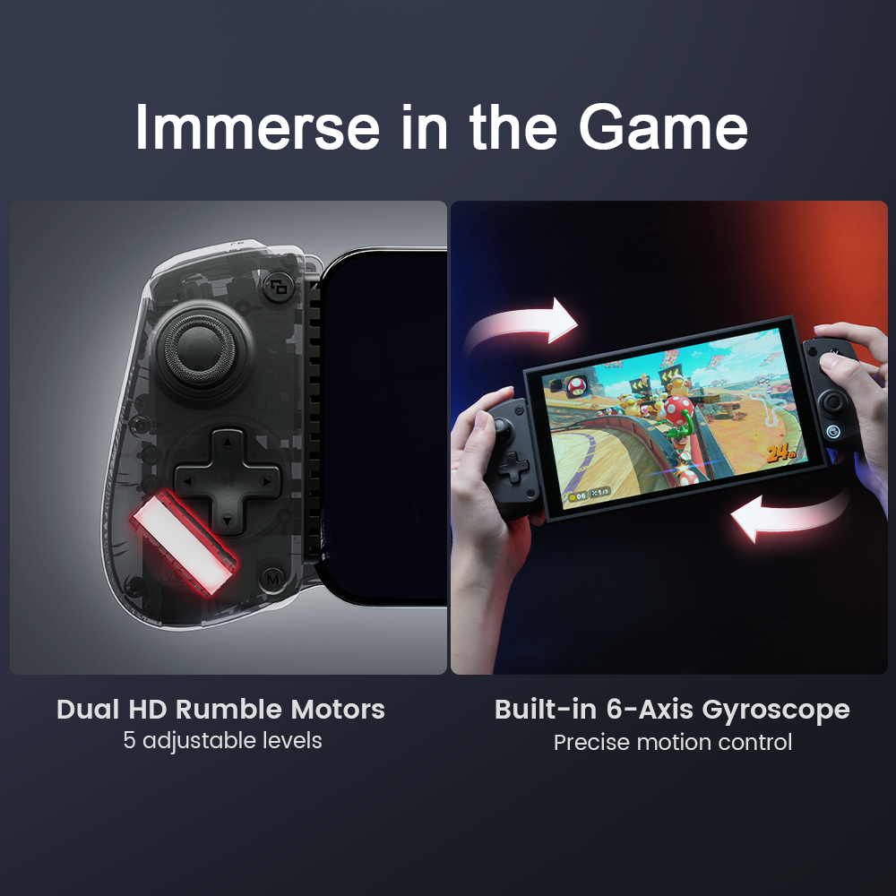 With full gyroscope support on Switch devices, the X5s enables native motion control for more precise and intuitive gameplay, perfect for aiming, racing, and action-packed titles.