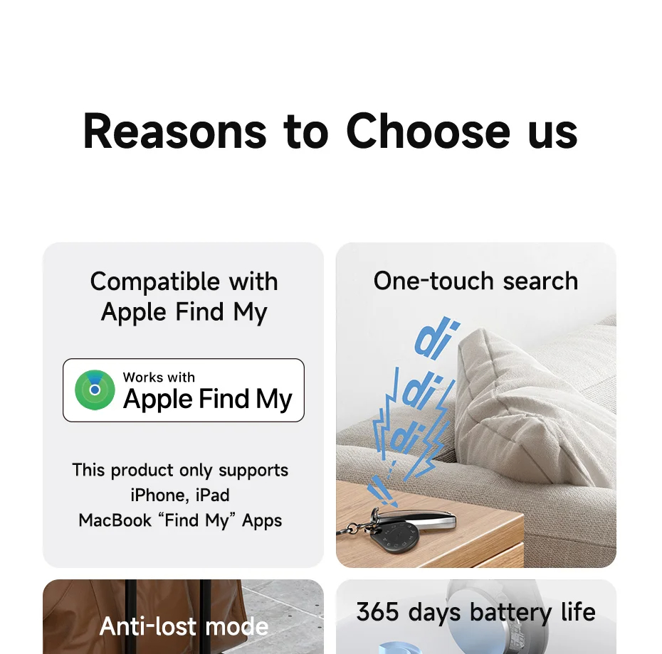 1. Bluetooth Tracking: Easily locate your items such as keys, wallets, backpacks, and luggage using the Find My app on iOS devices. Never hassle with misplaced belongings again.