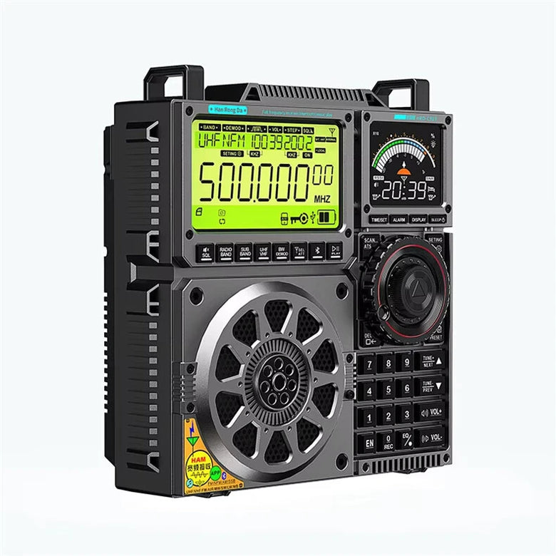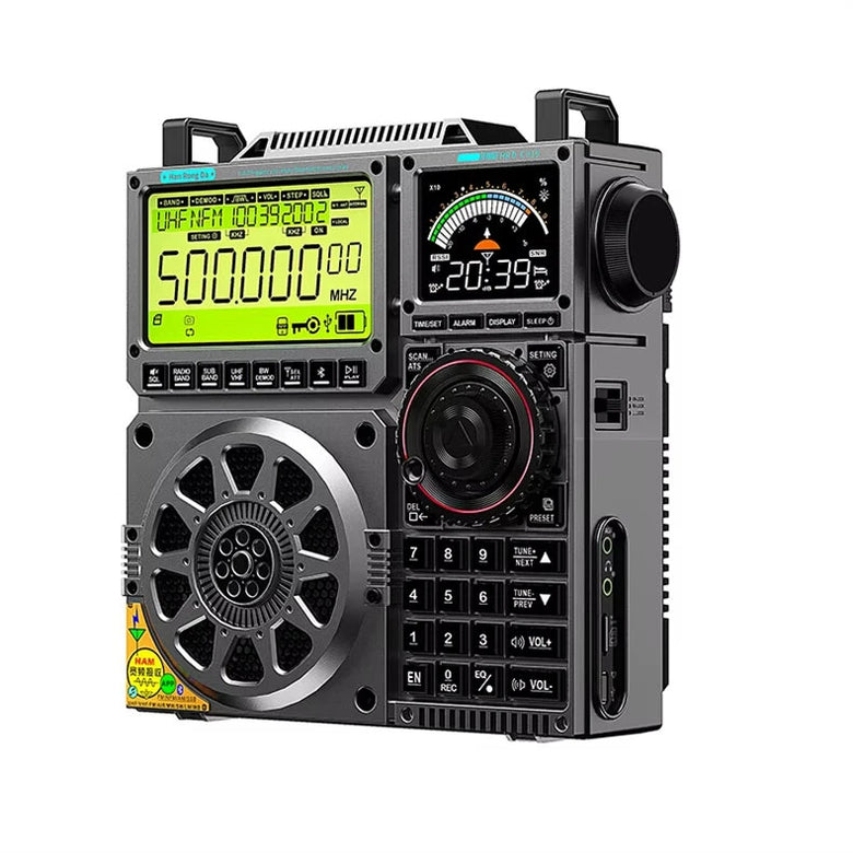 • HanRongDa HRD-C919 Multi-band Radio AIR FM MW SW Shortwave VHF UHF WB Portable bluetooth Speaker Aviation Band Radio Receiver 5000mAh Battery Supports TF Card AUX