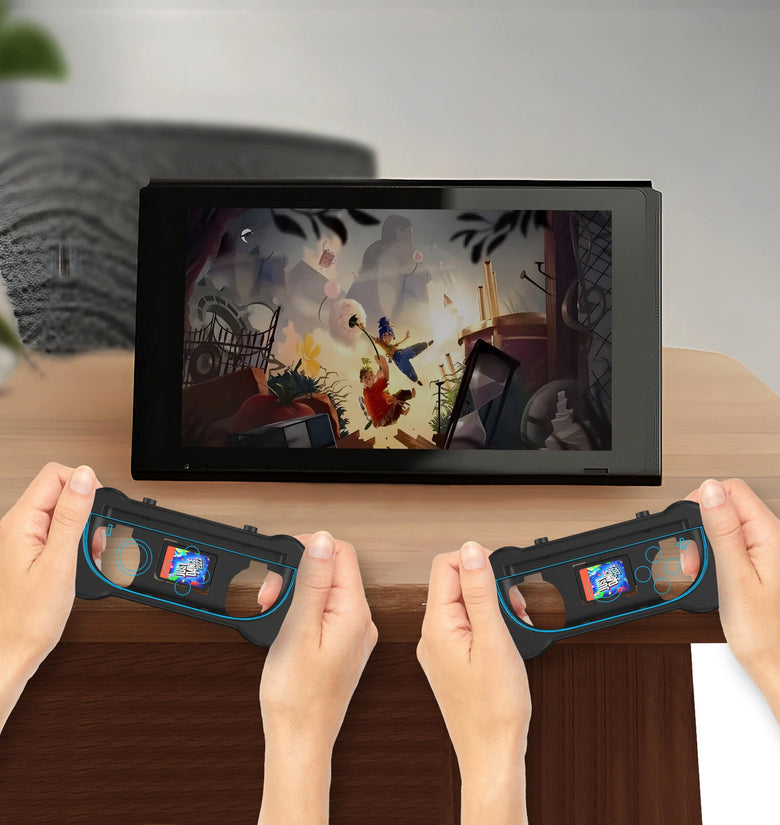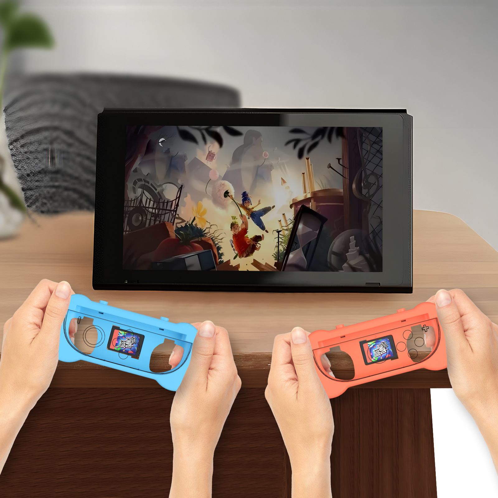 4. The grip extends to cover Joy-Con top buttons, supporting full SL and SR functionality while maintaining all hand controller features.