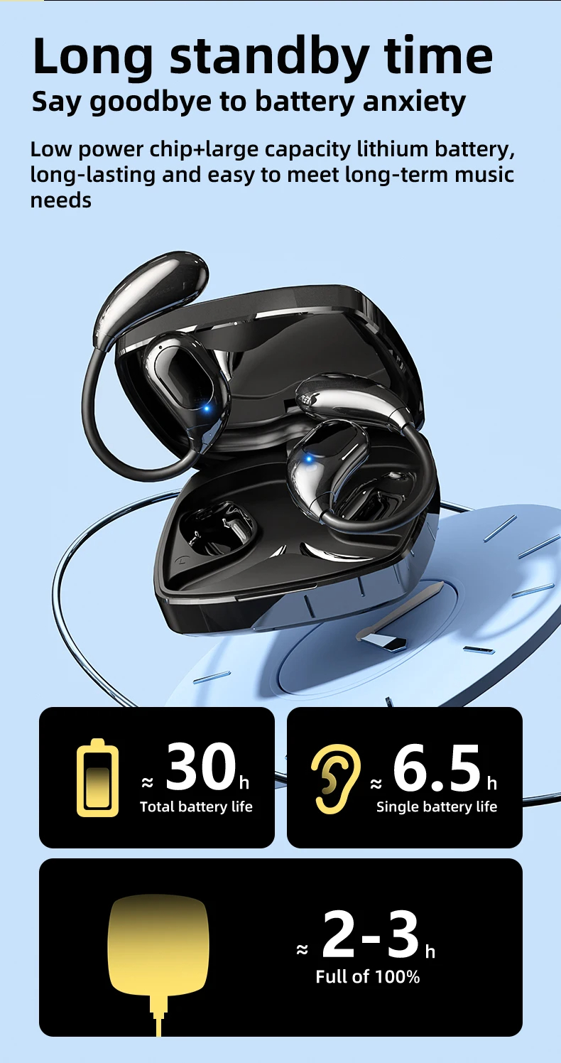 4. Long Battery Life: Provides up to 30 hours of total playback time and approximately 6.5 hours on a single charge.