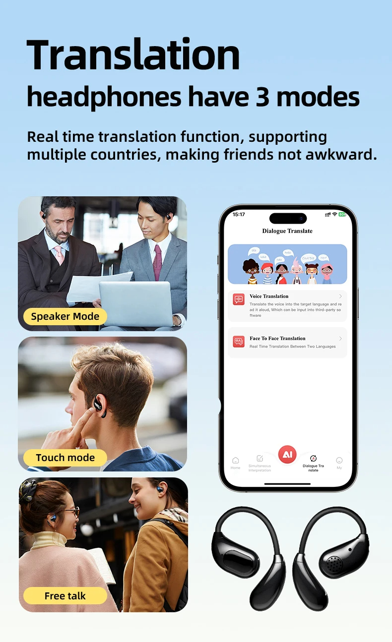3. Multiple Translation Modes: Includes Speaker Mode, Touch Mode, and Free Talk Mode for versatile usage.