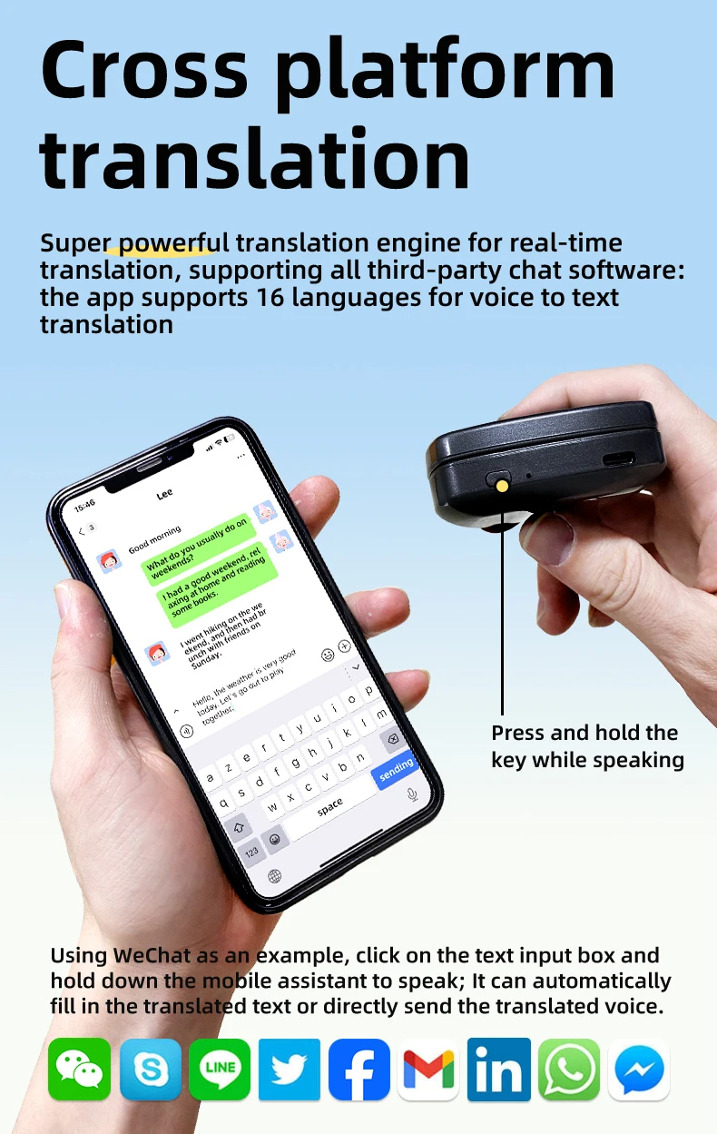 5. Cross-Platform Compatibility: Works with various third-party chat software for voice-to-text translations.