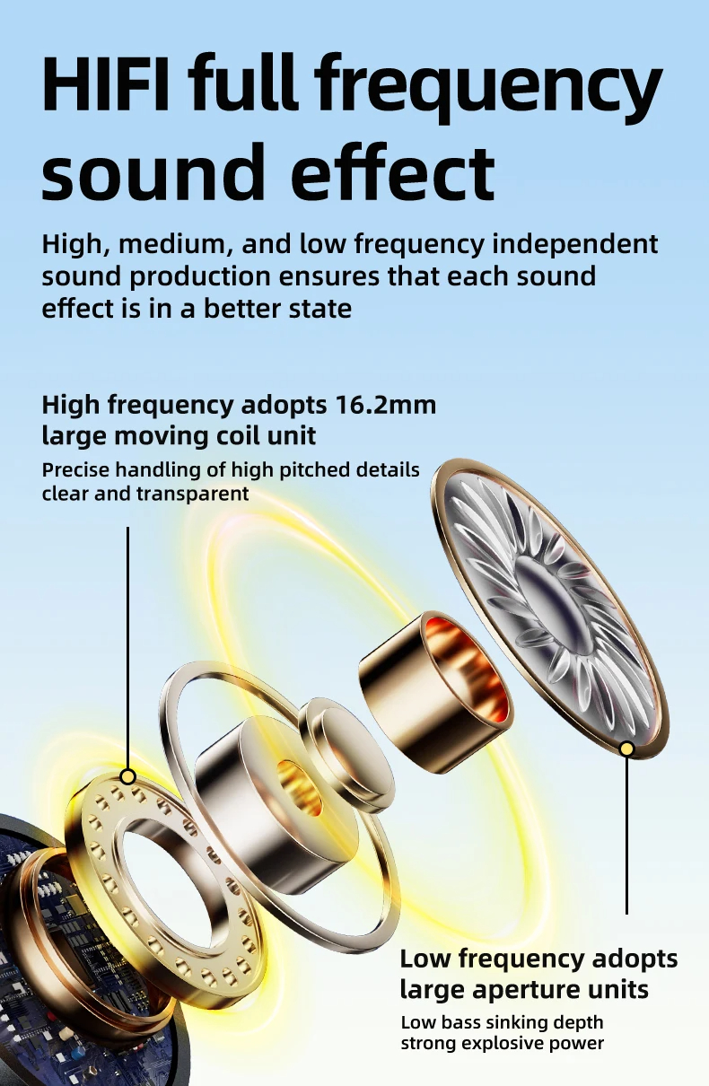 2. HiFi Sound Quality: Equipped with 16.2mm large moving coil units for superior sound quality with deep bass.