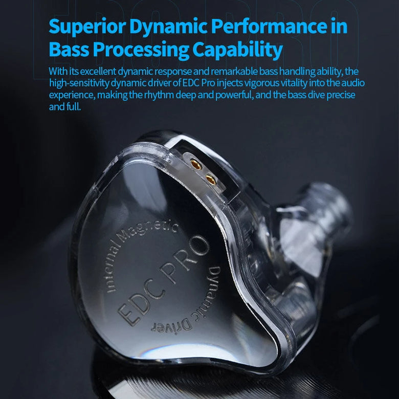 The KZ EDC PRO comes equipped with large dynamic drivers engineered to deliver deep, impactful bass and precise audio reproduction across the entire frequency range of 20-40000Hz. This meticulous design ensures an engaging and richly detailed listening experience tailored for HiFi enthusiasts.