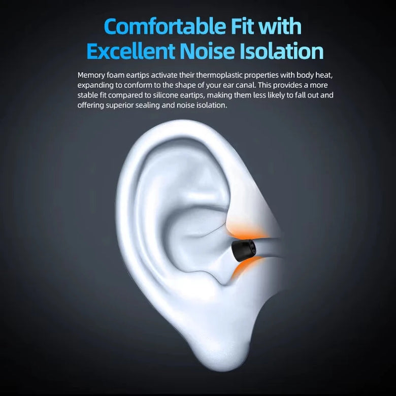 3. High-Quality Memory Foam: Conforms gently to your ear canal and expands with body heat, providing a secure and comfortable fit.