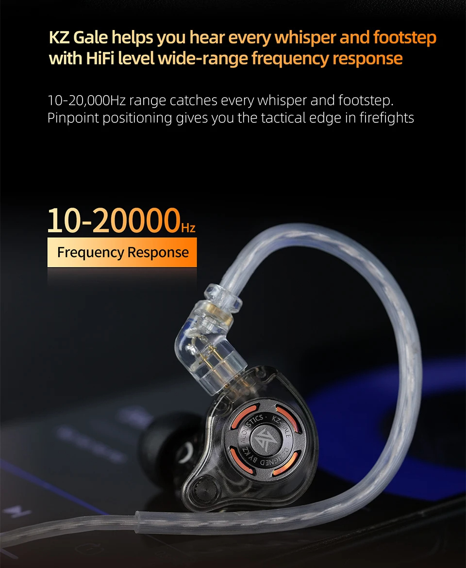 • KZ Gale Earbuds 3.5mm Wired Earphones Monitors Super-Linear Driver Hifi Bass IEM Earphone with Detachable Silver-Plated 2Pin Cable for Game
