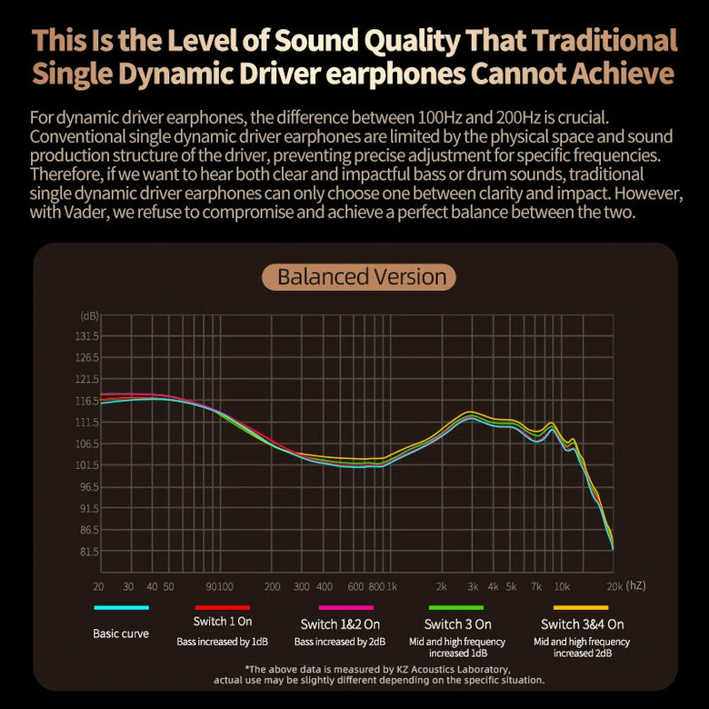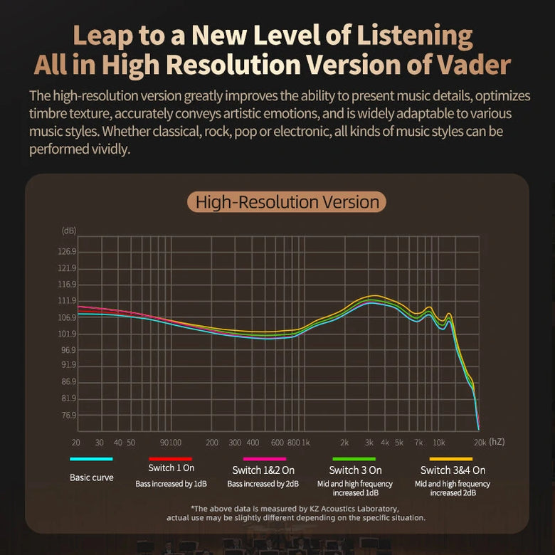 3. Built-in Professional Electronic Filter: The KZ Vader earphone is equipped with the latest generation professional electronic filter technology that supports user-customized sound adjustments. Offering superior tuning range, adjustment precision, and amplitude modulation, it far surpasses traditional damping tuning solution, ensuring you get the best sound output everytime you plug in.