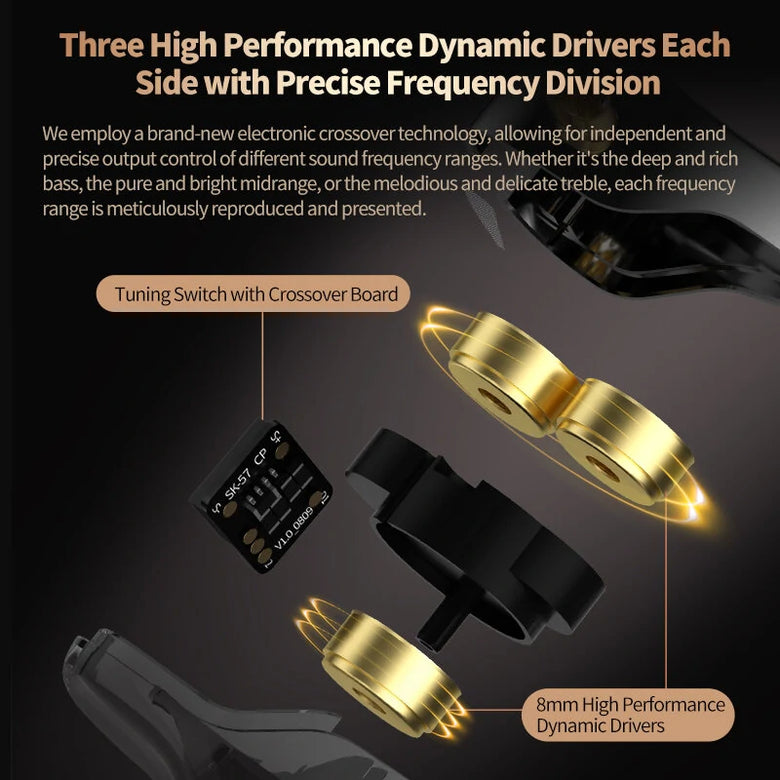 2. Self-research 8mm Moving Coil: This earphone features an in-house developed high-performance super-linear 8mm dynamic driver, that outperforms conventional 10mm dynamic drivers. The driver cleverly integrates a lightweight four-layer voice coil technology and an advanced externalmagnetic structure design, providing a robust hardware foundation for superior audio quality.