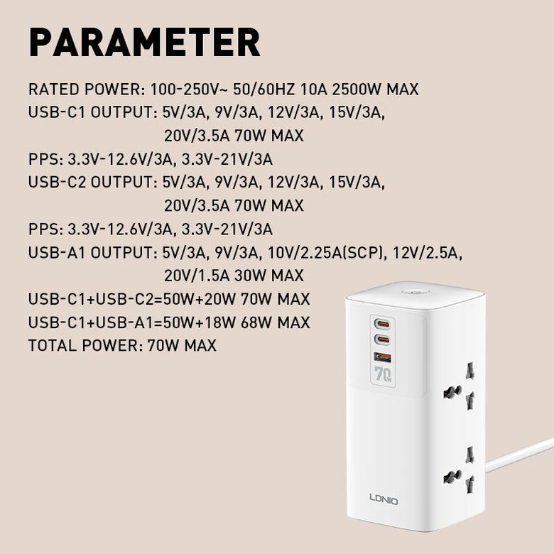 3. GaN Technology with LDNIO Turbo Power Engine: Enables a smaller, lighter, and faster charging solution.