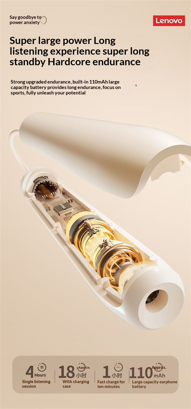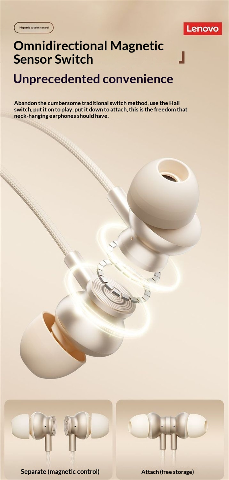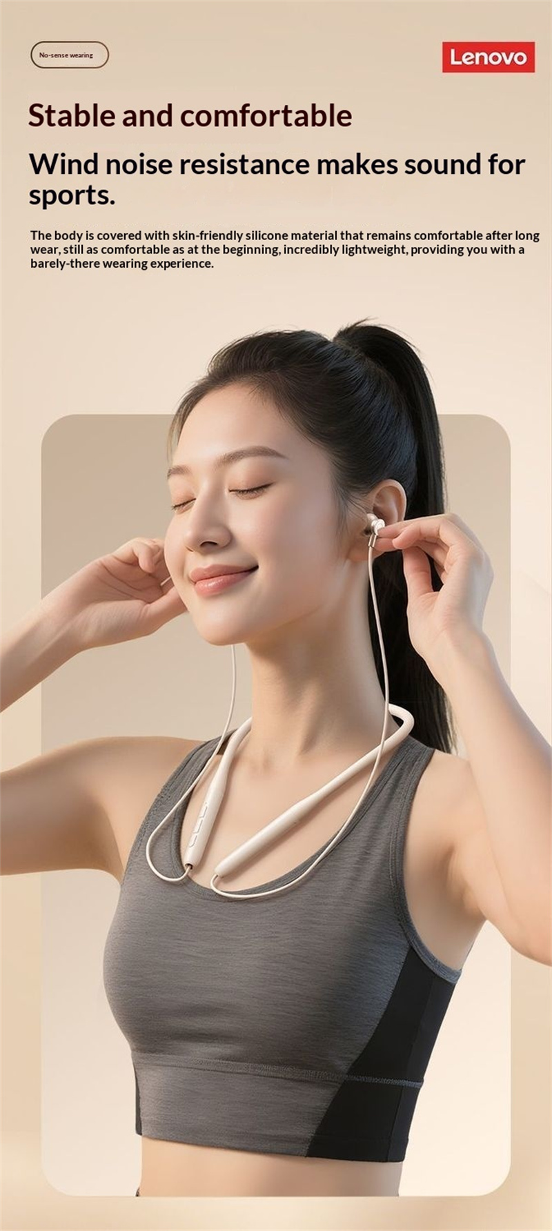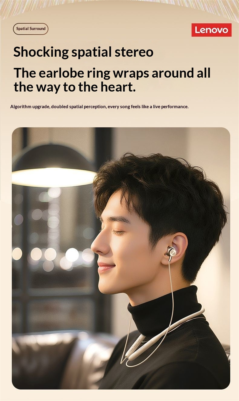 • Lenovo E500 Neckband Earphone Wireless bluetooth 5.4 Headphone 10mm Drivers Ultra-CD Level Sound Wireless Earphone 18H Playtime Sports Earphones
