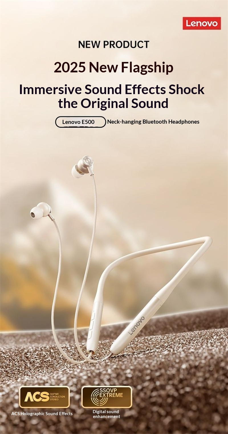 Lenovo E500 Neckband Earphone Wireless bluetooth 5.4 Headphone 10mm Drivers Ultra-CD Level Sound Wireless Earphone 18H Playtime Sports Earphones