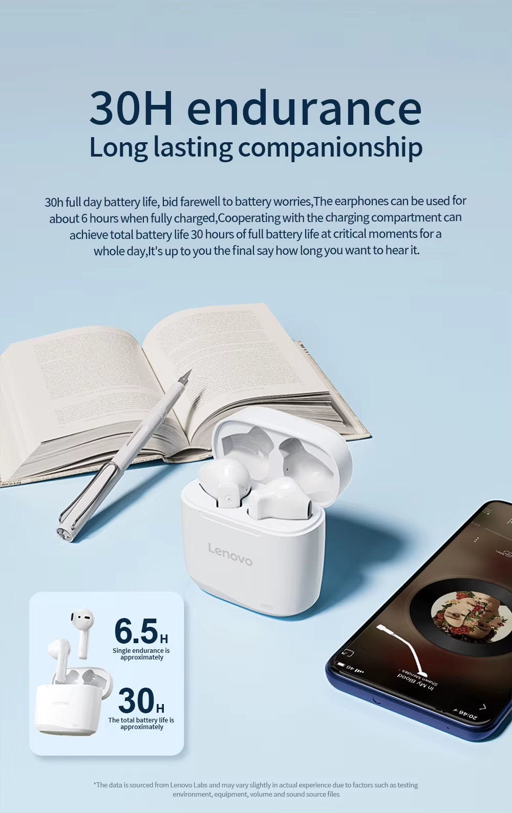 4. 30H Playback: Benefits from long-lasting battery life, providing up to 30 hours of playback when combined with the charging case.