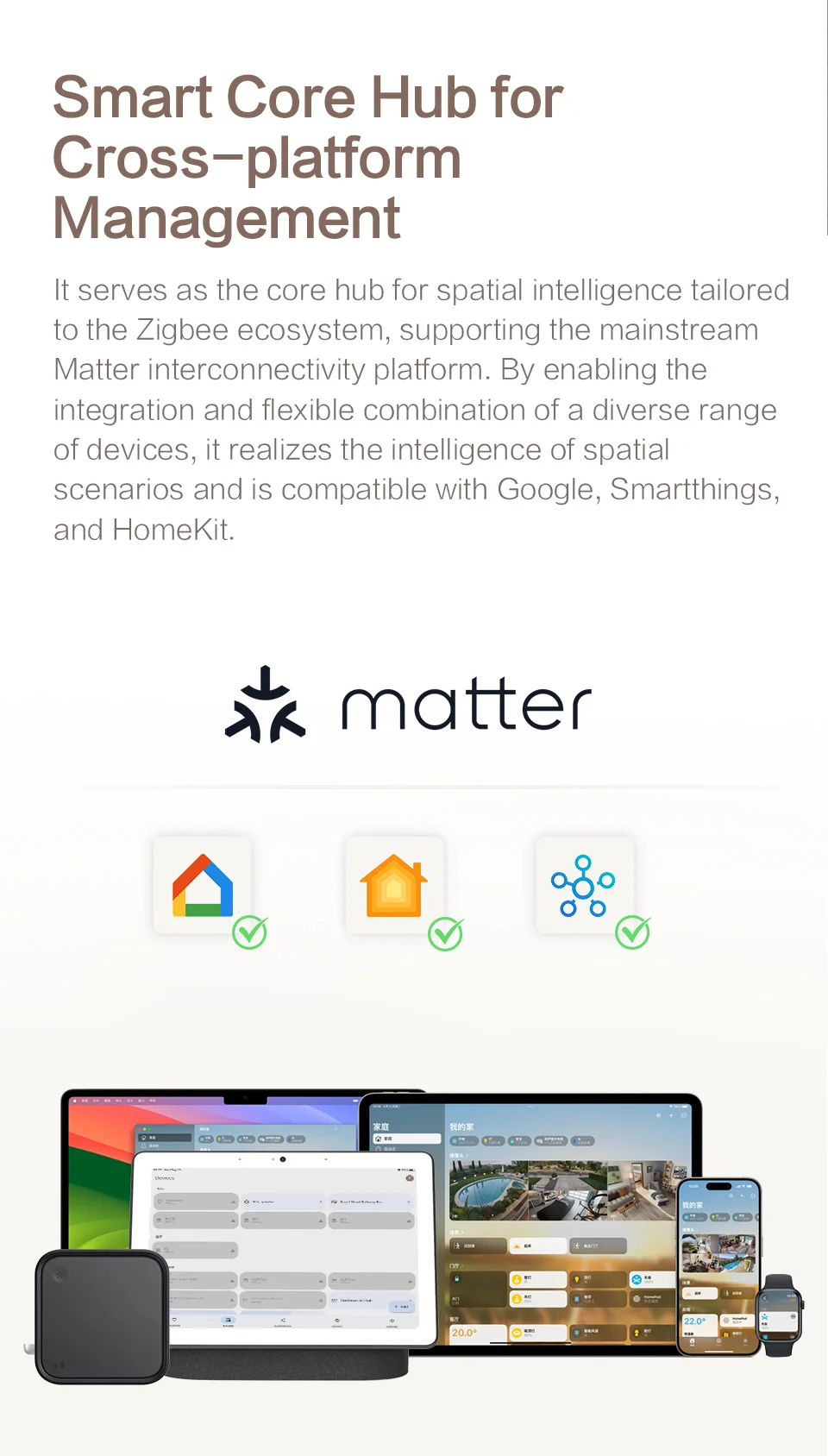 Seamlessly integrates with major ecosystems such as Google Home, SmartThings, Homekit, and Tuya, offering extensive interconnectivity for smart devices.