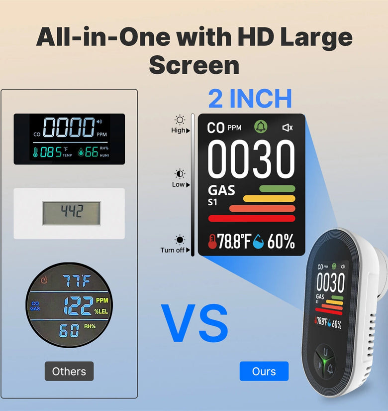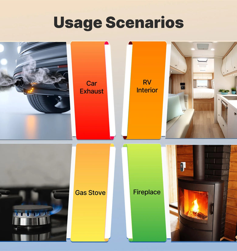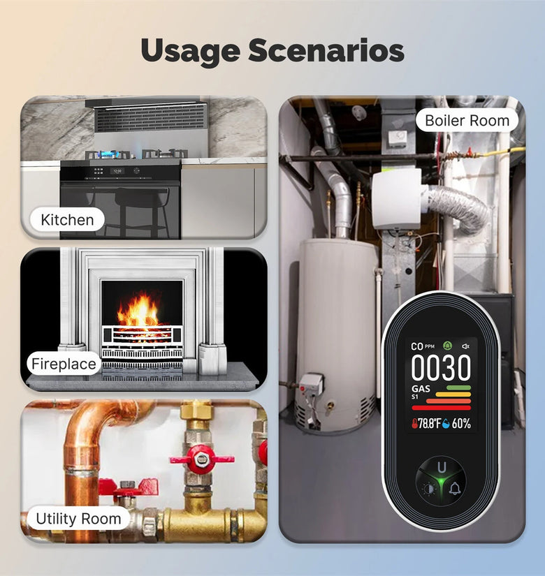 1. Carbon Monoxide Detection: Monitors CO levels in real time to ensure a safe and healthy environment.