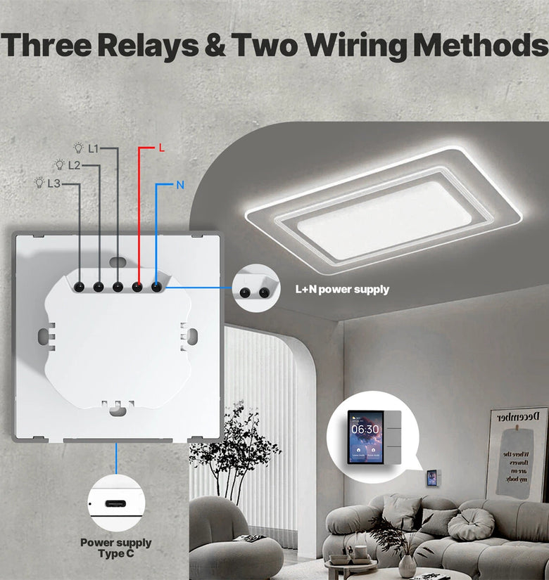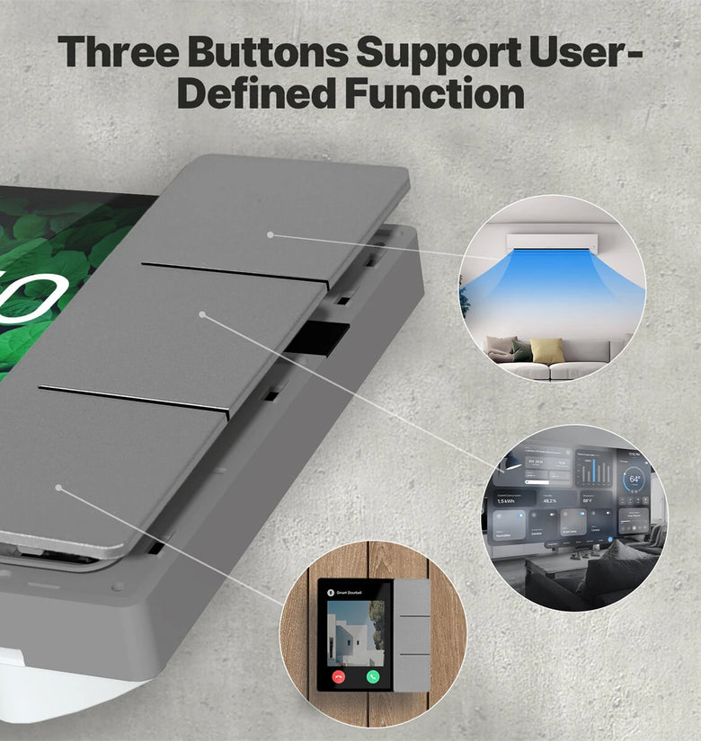 6. Enhanced Security Features: Links with smoke, gas, water sensors, and SOS buttons to trigger alarms and display alert notifications.