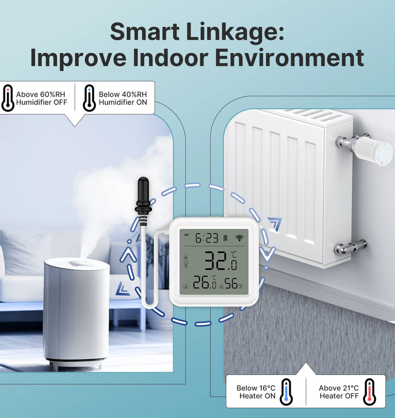 3. Smart Automation Integration: Seamlessly links with smart devices like thermostats, air conditioners, or smart lighting to automate environmental adjustments.