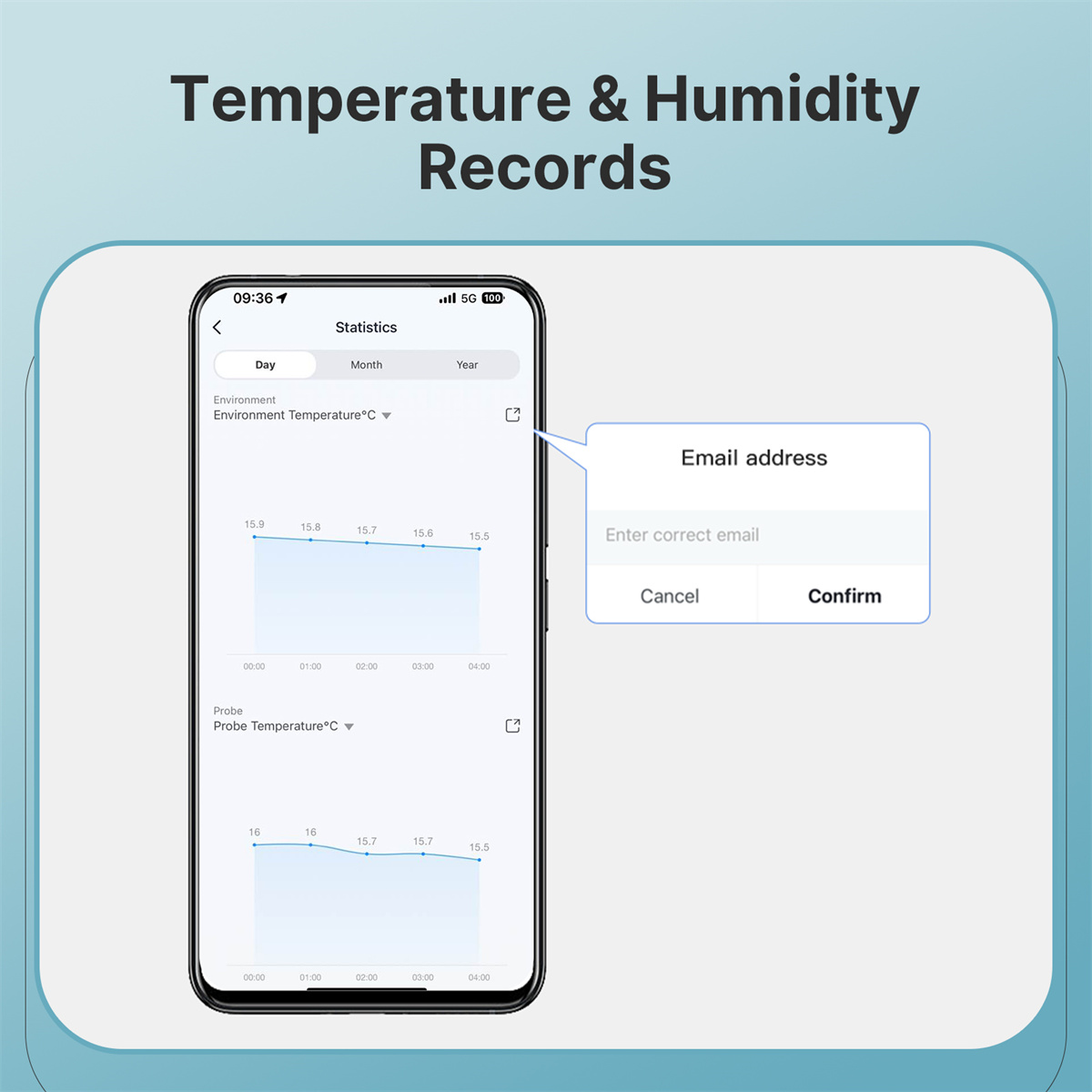 5. 1-Meter Long External Sensor Probe: Enhances temperature detection range, suitable for various scenarios without being confined by distance.