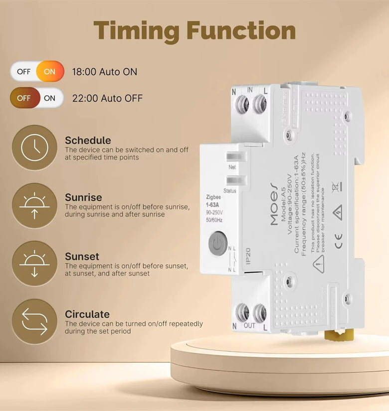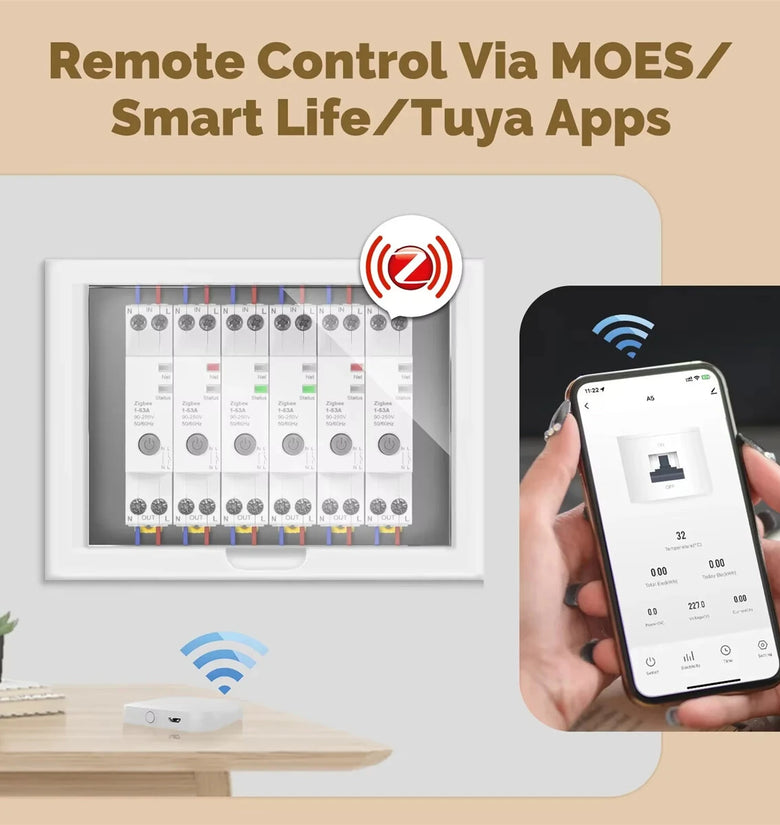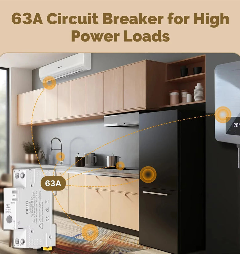 • MOES Tuya Zigbe 63A Circuit Breaker Smart Electricity Monitor V0 Fireproof Retardant Alarm Threshold Set Tuya & Smart Life APP Control Voice Control with Alexa Google Home