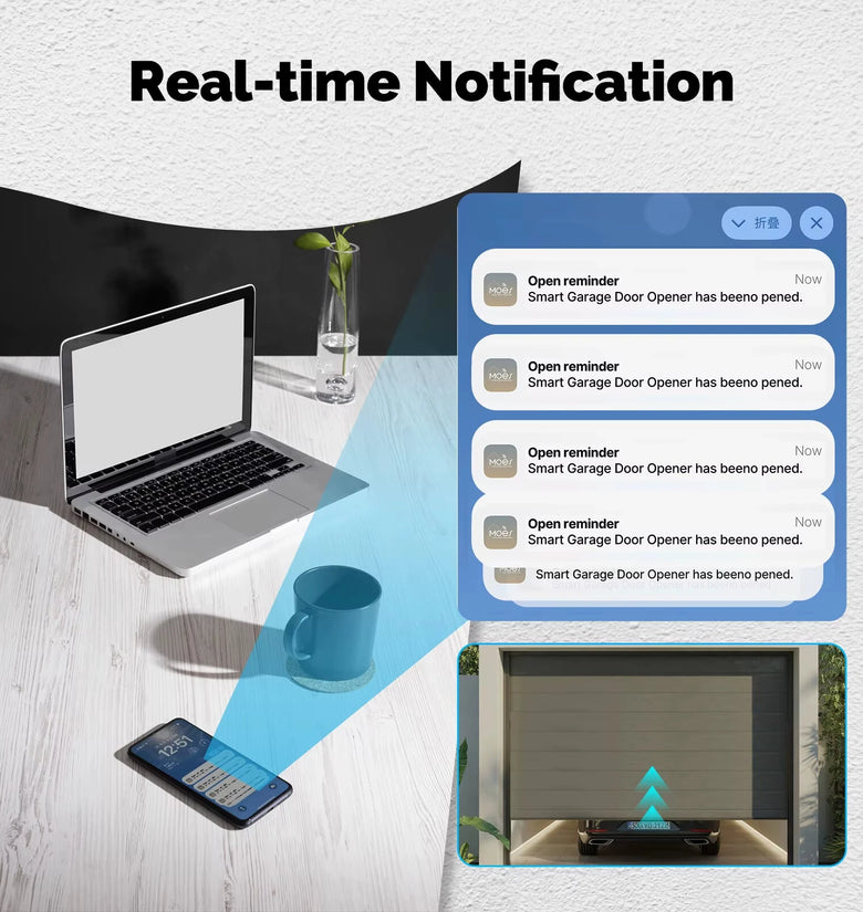 3. Real-Time Notifications: Receive instant alerts about the status of your garage door, ensuring security and peace of mind.