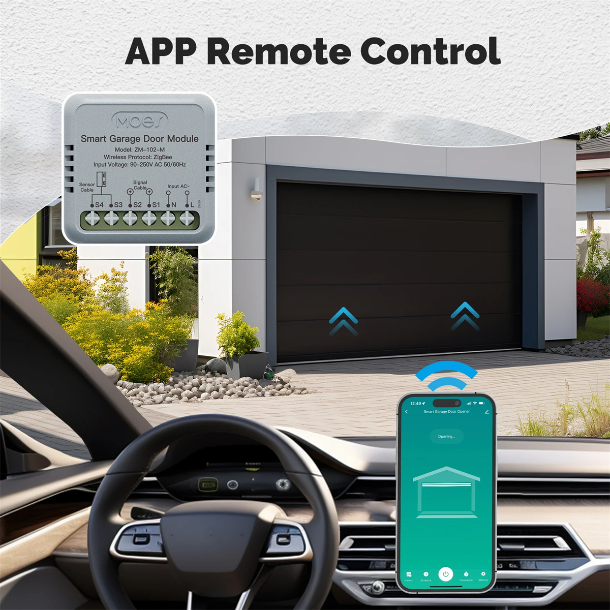 1. APP Remote Control: Control your garage door anytime, anywhere via the Smart Life APP, providing seamless integration with your smart home ecosystem.