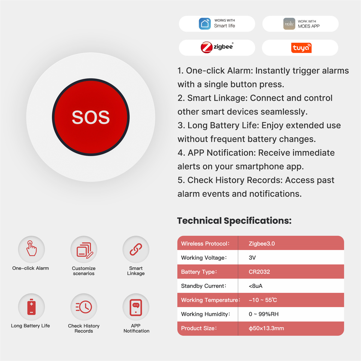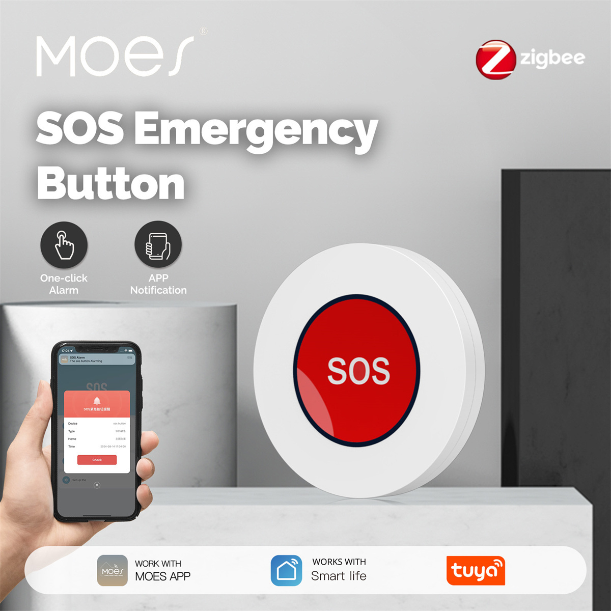 • MOES Tuya Zigbee3.0 SOS Button Emergency Alarm Smart Wireless Remote Control APP Alert Home Automation Security