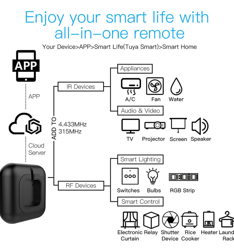 • Moes WiFi RF IR Universal Remote Controller RF Appliances Appliances Tuya Smart Life App Voice Control via Alexa Google Home