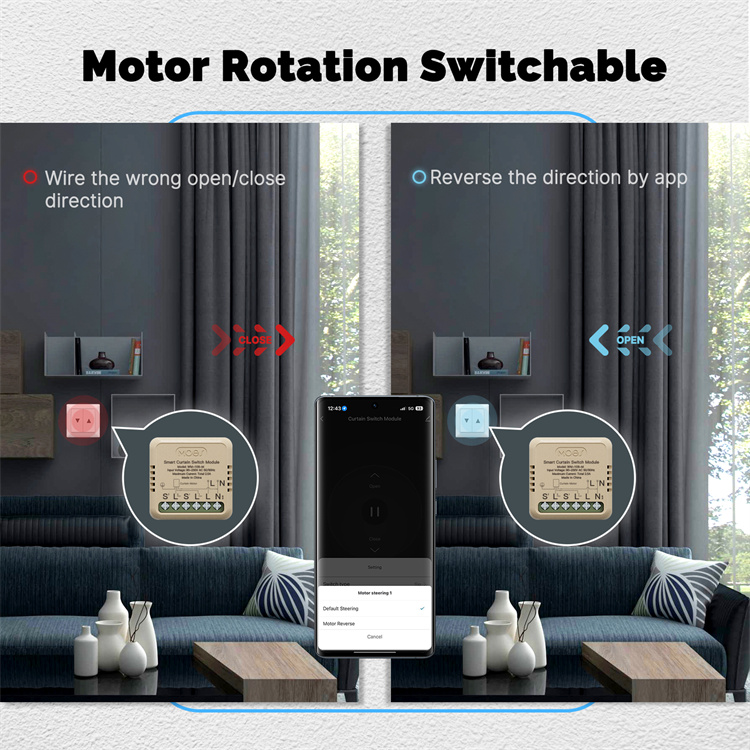5. Motor Steering: Option to switch motor rotation direction via app for easy adjustments.