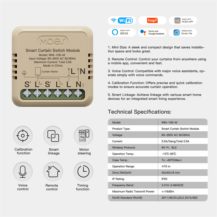 3. Calibration Function: Precise and quick calibration modes for accurate curtain operation.
