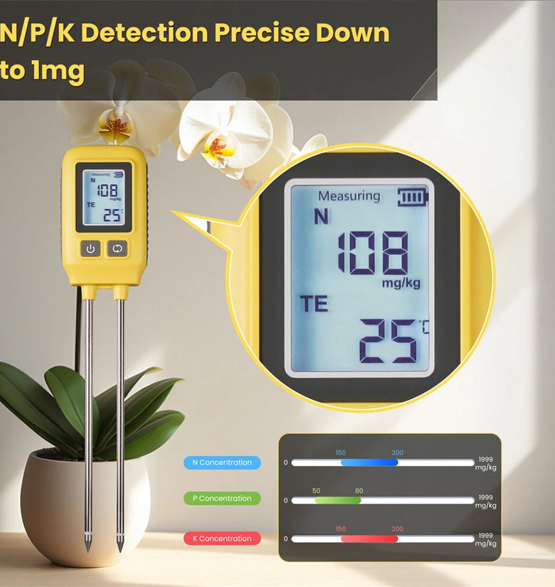 4. Wide Detection Range: The device features a wide detection range of 1–1999 mg/kg with precision down to 1 mg for accurate insights into soil nutrient levels.