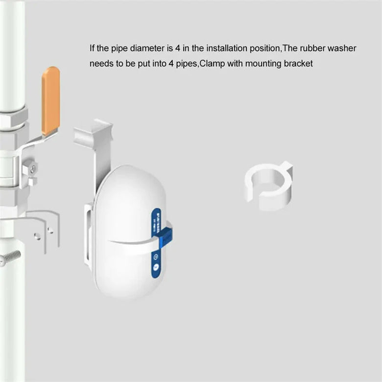 For installation on 4-point pipelines, insert the rubber gasket into the pipes and secure it with the mounting bracket.
