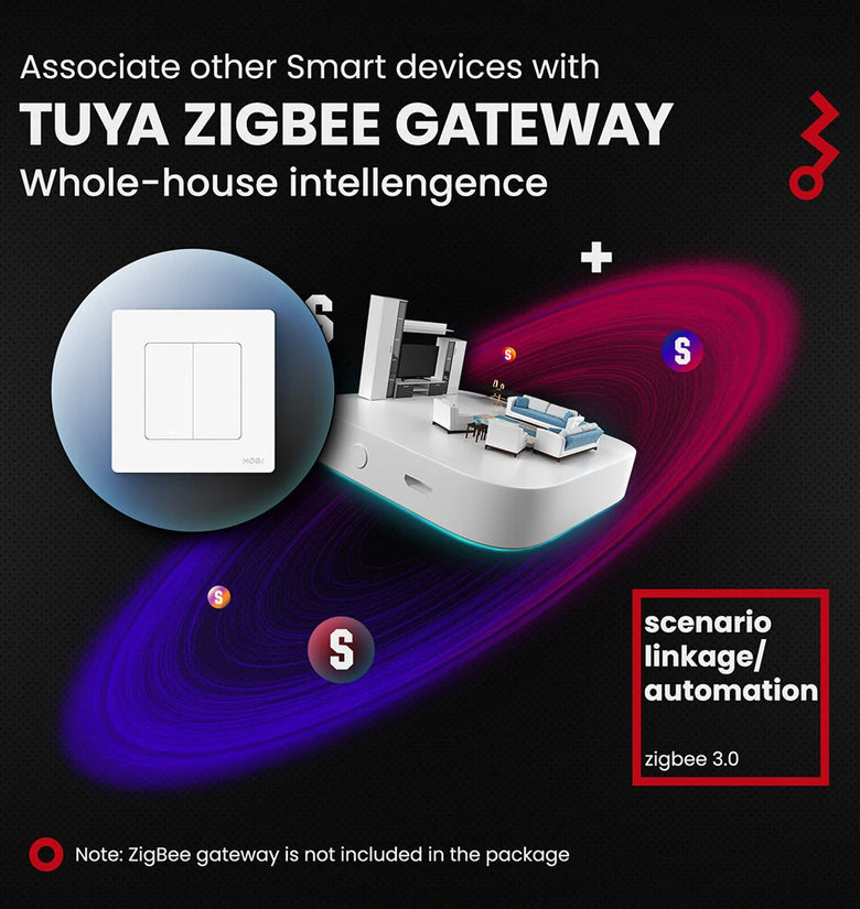 6.Fully Functional and Unique Appearance:Fast pairing mode with Tuya ZigBe hub required,easily get smart home scene linkage by this smart switch integrating function and appearance.