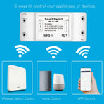 1.Wireless Remote Control:Enables to remotely control your connected appliances on your smart phone wherever you are.2.4 b/g/n Networks provides the needed connection to the DIY Switch Module without the need of a separate HUB.(Compatible with Android&iOS.)