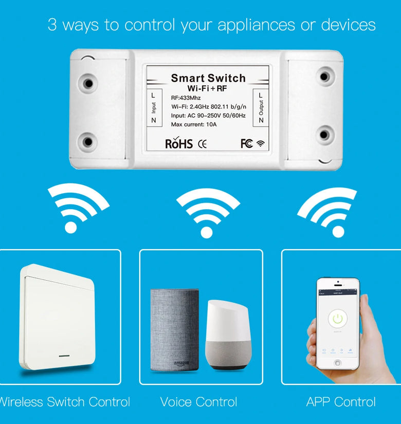 • Mouehouse RF433 + WiFi DIY Smart Switch Module RF433 Remote Control for Smart Automation Smart Life/Tuya Work with Alexa and Google Home